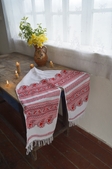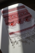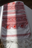 Заквітчаний рушник із різних відтінків червоного «Трояндовий сад» від хрестика до мережива створений з любов‘ю, шукає домівку.